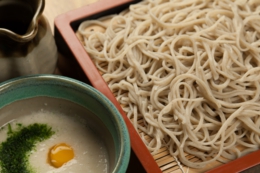 Our tsuyu (sauce) is also made from the finest ingredients; katsuo-bushi (dried bonito flakes) from Makurazaki, Kagoshima Pref; hon-mirin (sweet sake) from Mikawa, Aichi Pref; and soy sauce made especially for soba.
