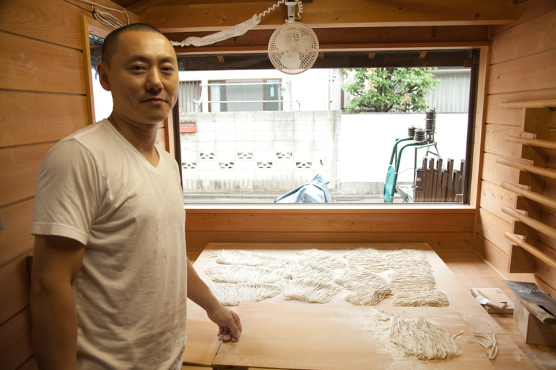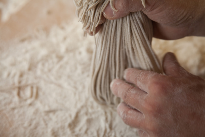 いくら質の良い材料を使っても、一つ一つの工程を少しでも疎かにすれば、見た目は良くても、茹で上げた時に食感や質に大きな差が出ます。季節や天候だけでなく材料の状態も日々違います。蕎麦と対話しながら、毎日変わらぬ味が出来るよう、丁寧なそば打ちを心がけています。
